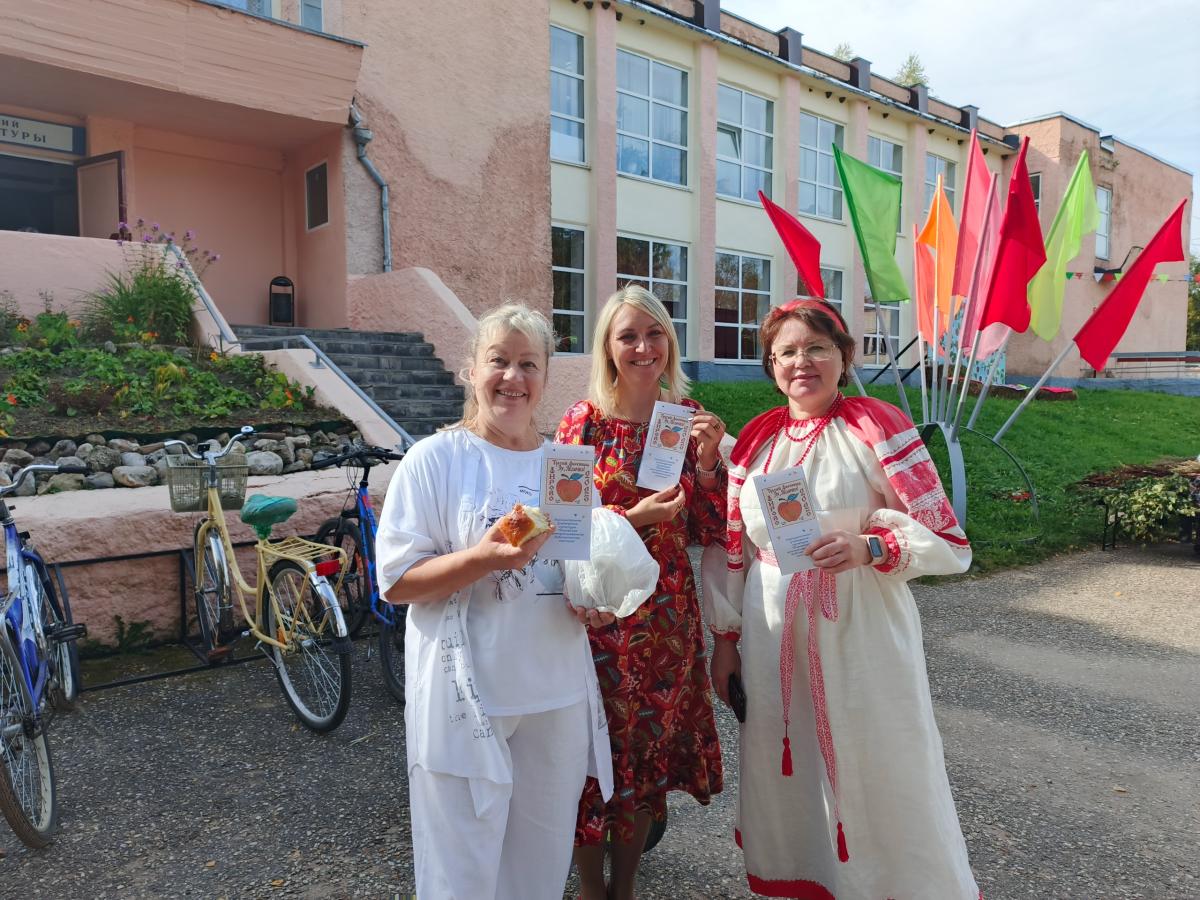 На протяжении всего праздника участники фестиваля угощались яблоками с добрыми пожеланиями.