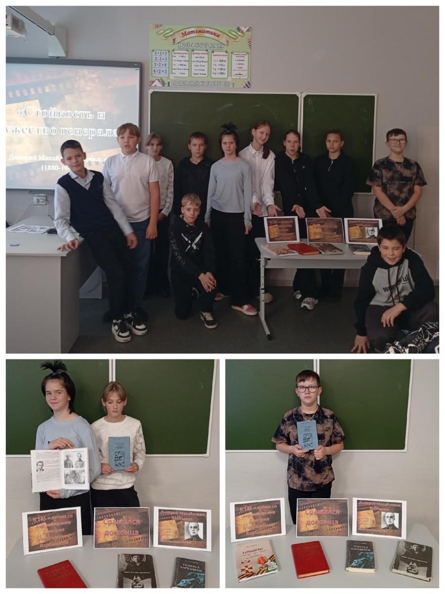 В ходе часа памяти "Стойкость и мужество генерала" шестиклассники познакомились с биографией и подвигом Дмитрия Михайловича Карбышева — выдающегося советского военачальника и героя Великой Отечественной войны.